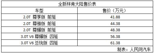 全新林肯大陸正式上市 售41.88萬至61.38萬元