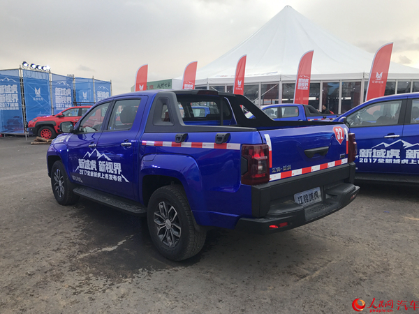 2015年上海車展發(fā)布的域虎概念皮卡建立了品牌DNA,新域虎繼承了其智能化、機械感設(shè)計、鮮明的個性化風(fēng)格,另外還在前臉搭配了銀色的下護板,貨箱內(nèi)部噴涂磨砂層,并設(shè)有啞光的防滾架。車身尺寸為5375×1905×1835mm,貨箱尺寸為1475×1475×500mm。