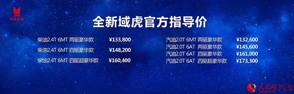 售價13.26萬-17.33萬元江鈴全新域虎上市
