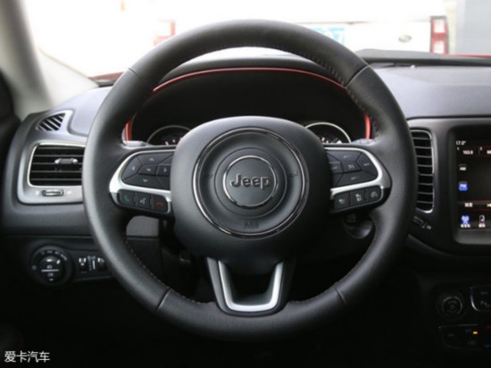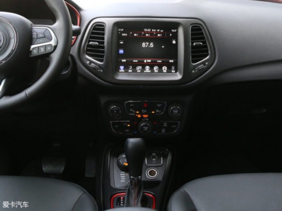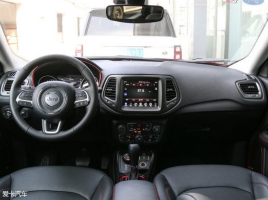 內(nèi)飾相對于外觀而言,顯得柔和了不少。較為飽滿的中控臺通過幾道弧線的勾勒之后,更加動感且富有層次,對稱的布局則讓中控臺顯得更加規(guī)整。內(nèi)飾工藝水準(zhǔn)控制的不錯,這點是Jeep車型的一大進步。
