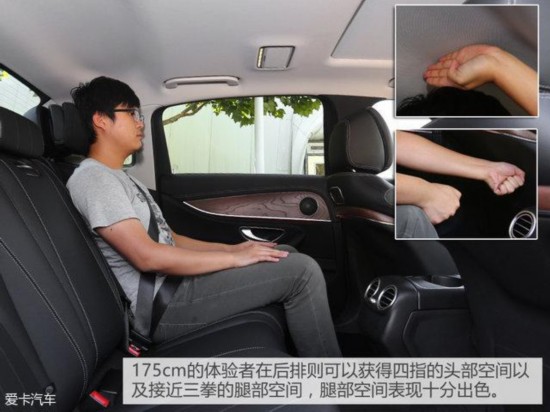 保持前排座椅位置不變,體驗者來到第二排,頭部空間還剩一拳一指,膝部空間兩拳。