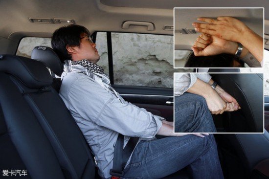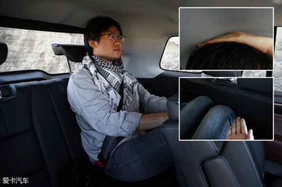 體驗(yàn)者進(jìn)入后排,頭部空間超過一拳三指,膝部空間約兩拳。