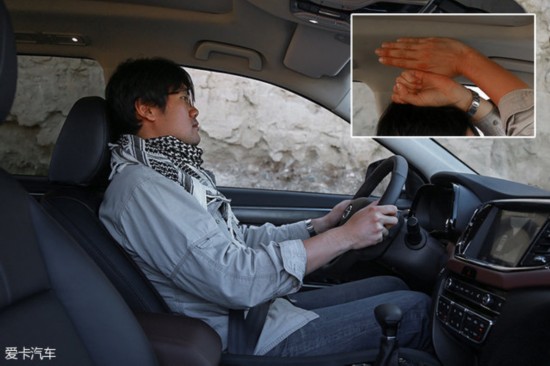 體驗(yàn)者身高185cm,將座椅調(diào)節(jié)至最低,前排頭部空間約一拳四指。