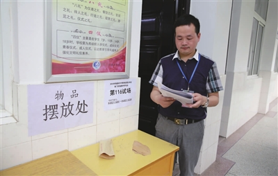 昨日,海南中學(xué)考點(diǎn)內(nèi),老師正在有序布置考場。陳沈華攝