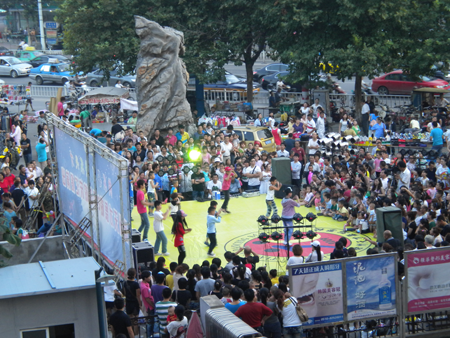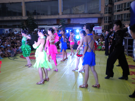中國黃淮網(wǎng)訊(采編部主任 滕富強) 2011年8月24、25日連續(xù)兩天傍晚,徐州市北區(qū)農(nóng)工商超市廣場,九龍湖休閑廣場上熱鬧非凡,江蘇省徐州市天才舞蹈學校的“快樂暑假”文藝演出,吸引了廣大市民觀看。隨著孩子們的盛裝熱舞,各種燈光的變幻色彩,掌聲一陣又一陣,100多平方米的臺前排滿了照相、攝影的家長和媒體。拉丁舞、摩登舞、斗牛舞、街舞、民族舞、肚皮舞,節(jié)目一個接一個,主持人在節(jié)目換場時還特別宣布,天才舞校對家境貧寒,熱愛舞蹈的孩子提供免費教學,此項慈善義舉得到群眾的廣泛贊許,熱烈的掌聲把演出活動推向高潮……