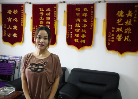 人民日報市場報網(wǎng)絡版中國黃淮網(wǎng)采編部主任于8月26日上午,冒雨專程到位于堤北大家福超市四樓的天才舞校,采訪了校長范松,她很文靜、熱情,微笑著介紹著辦學的經(jīng)歷。21歲的校長顯示出青春的活力,她們團結(jié)奮斗,取得了許多驕人的成績,先后在北京、青島、棗莊等重大體育舞蹈比賽中共獲60多塊獎牌,10多座獎杯,收到家長們送來的錦旗10多面,一致感謝天才舞校培養(yǎng)了他們的孩子,取得大賽好成績。
