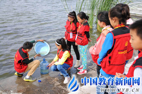 小記者團在檢測水質。