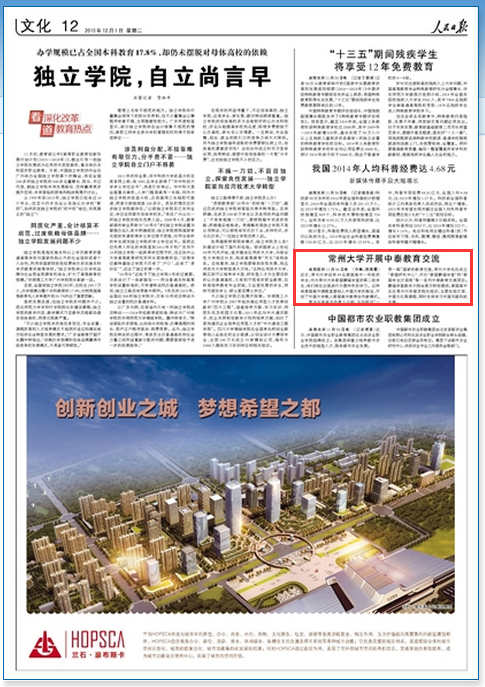 人民日?qǐng)?bào):常州大學(xué)開展中泰教育交流