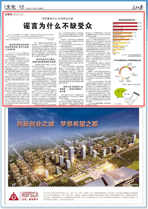 在不少專(zhuān)家看來(lái),網(wǎng)絡(luò)推手和商業(yè)營(yíng)銷(xiāo)是部分謠言產(chǎn)生和傳播的一股重要力量。但從受眾心理角度分析,獵奇心理是謠言傳播的最普遍的原因之一。新浪微博相關(guān)負(fù)責(zé)人尹雪賡分析認(rèn)為:“從傳播規(guī)律來(lái)看,人們更關(guān)注新奇、顛覆常識(shí)的訊息,出于這樣的心理,謠言也就更容易得到傳播。”