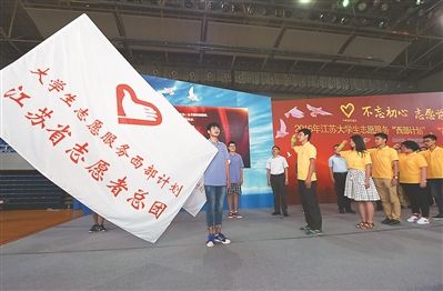 21日,2016年西部計劃、蘇北計劃大學生志愿者出征儀式在南京林業(yè)大學舉行,來自全省各院校的團委書記、蘇北各市項目辦代表、志愿者900多人參加了出征儀式。(楊頻萍 余萍)