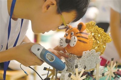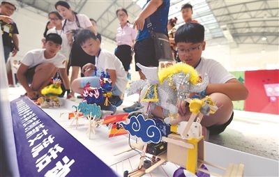 昨日,海峽兩岸青少年科技創(chuàng)新交流活動(dòng)在連云港徐圩新區(qū)拉開帷幕,兩岸39所中小學(xué)的400多名師生同臺(tái)競(jìng)技。圖為小選手們制造出模仿不同生物運(yùn)動(dòng)方式的機(jī)器人。 新華報(bào)業(yè)視覺中心記者 邵 丹攝