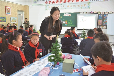 徐州市“學(xué)講縣縣行”活動現(xiàn)場,云興英語團(tuán)隊(duì)進(jìn)行示范展示。圖為冷子老師執(zhí)教展示課。