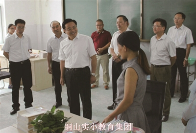 走訪中,王維峰書記詢問并了解了銅小教育集團的發(fā)展思路、師資力量和教育教學管理等辦學情況,同時參觀了校園、辦公室及班級環(huán)境等,對銅小集團化建設發(fā)展情況及前瞻性項目開展給予了充分的肯定和高度的評價,并對今后教育發(fā)展提出了指導性意見:進一步加強校容校貌建設,綠化美化校園環(huán)境;加強教師團隊建設和師資培訓,組建一支高素質的師資隊伍;加強學校特色內涵的建設,努力辦成區(qū)最具特色的示范性窗口學校。希望教師們繼續(xù)發(fā)揚教書育人的精神,牢記使命,甘于貢獻,為社會培養(yǎng)出更多更優(yōu)秀的人才。同時表示,區(qū)委、區(qū)政府將一如既往地支持和關心教育事業(yè),加大教育投入力度,改善辦學條件,推進全區(qū)教育事業(yè)持續(xù)健康發(fā)展。