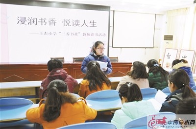 為了拓展教師課堂教學的智力背景、增加課堂教學的文化底蘊,王杰小學開展了幸福閱讀活動,將讀書活動與校園文化建設相結(jié)合,從校長、教師到學生,全員參與,全方位開展活動,點燃讀書熱情,營造出濃郁的書香氛圍。學校成立了讀書團隊,將教師閱讀置于閱讀共同體中,取名為“三養(yǎng)書苑”,書苑每月集中活動一次,每月主題不同。老師們及時記錄讀書的時間、字數(shù)、做好摘錄和隨筆并進行交流和分享,為參加市讀書比賽打好基礎。