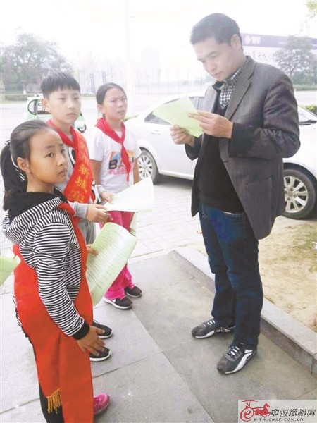 少先隊(duì)員走進(jìn)社區(qū)宣傳創(chuàng)文知識(shí)。