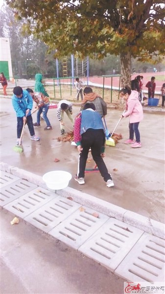 孩子們?cè)趯?duì)校園周邊的道路以及周邊綠化帶進(jìn)行徹底大掃除。