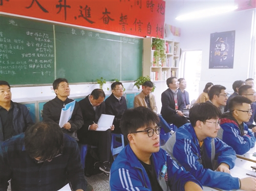 “請同學(xué)們分別以不同的視角介紹你所了解的徐州文化……”高一(4)班,耿妍老師正在進(jìn)行高一政治的授課,部分與會人員對該堂課進(jìn)行了觀摩,與此同時,高三語文、高三數(shù)學(xué)、高二化學(xué)等9堂觀摩課也在同步進(jìn)行。