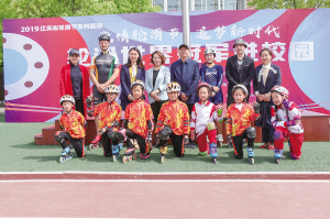 為推動(dòng)輪滑運(yùn)動(dòng)在江蘇省各級(jí)各類學(xué)校的普及發(fā)展,5月7日上午,由江蘇省社會(huì)管理中心、江蘇省輪滑協(xié)會(huì)主辦,由徐州市體育局、徐州市輪滑運(yùn)動(dòng)協(xié)會(huì)、圣巴(上海)文化傳播有限公司承辦的 “江蘇省輪滑節(jié)系列活動(dòng)—世界冠軍進(jìn)校園公益行”活動(dòng)走進(jìn)徐州市星光小學(xué)。徐州市體育總會(huì)副秘書(shū)長(zhǎng)范玉清、徐州市泉山區(qū)教育局副局長(zhǎng)鄭旭言、徐州市星光小學(xué)校長(zhǎng)喬文雯、徐州市輪滑運(yùn)動(dòng)協(xié)會(huì)秘書(shū)長(zhǎng)魏錦、輪滑舞蹈世界冠軍自由式輪滑全國(guó)冠軍林恩寧、速度輪滑國(guó)際冠軍Angie、速度輪滑國(guó)際冠軍COOK等嘉賓參加了活動(dòng)。