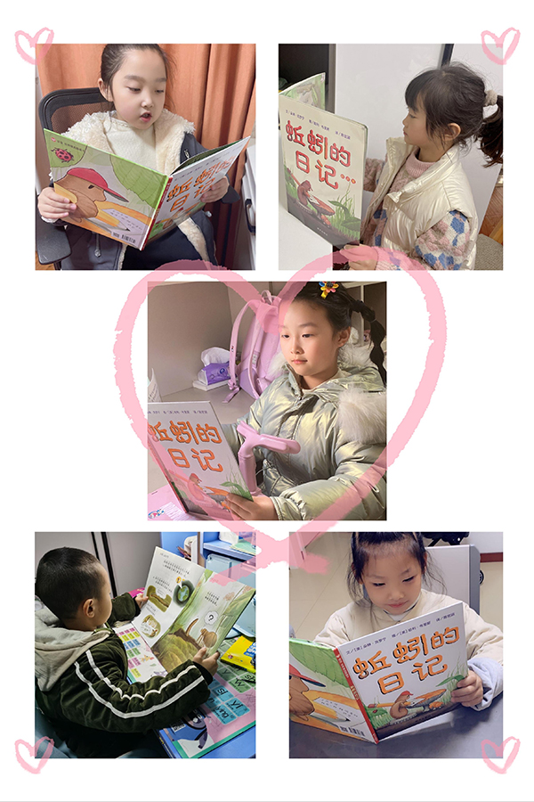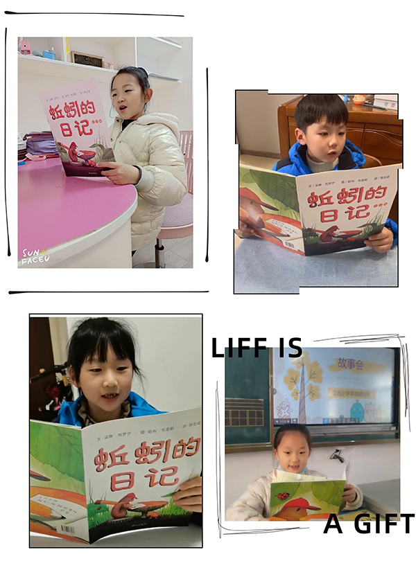 本次活動,一年級的小朋友們閱讀了《蚯蚓的日記》和《猜猜我有多愛你》這兩本書,《蚯蚓的日記》主要記錄和表達了小蚯蚓的觀察及思考,這是一本極為有趣的圖畫書,以日記書寫的方式,從小蚯蚓的觀點紀錄學(xué)校、家庭和朋友之間的生活點滴。