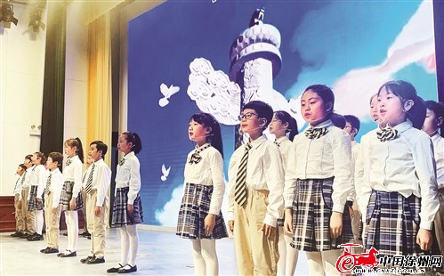 徐州市全民閱讀推廣人暨新沂市第五屆領(lǐng)讀者大會上學生在朗誦。徐州日報記者 苗蓁 攝
