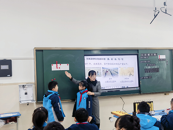 整節(jié)課,王老師以學(xué)為中心、注重問題引領(lǐng)、創(chuàng)設(shè)輕松愉快的學(xué)習(xí)氛圍,讓學(xué)生自主思考、交流、很好地培養(yǎng)了學(xué)生的“數(shù)”感。真正把課堂還給學(xué)生,學(xué)生在課堂上做到了真學(xué)。不僅如此,王老師非常注重多元評價,如“小學(xué)霸”、“小小書法家”等,春風(fēng)化雨般的聲音激勵著每一位學(xué)生,提高學(xué)生參與活動的積極性。