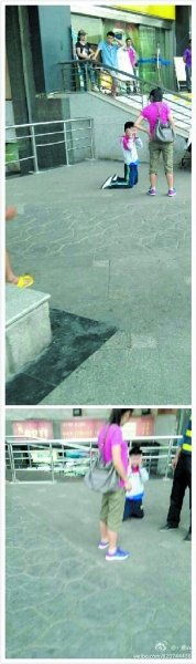 記者在帖子下方上傳的兩張圖片里看到,一小男孩跪在地上,雙手捂臉表情痛苦,身邊站著一位身穿粉紅色上衣的女士。該微博發(fā)出后,不少網(wǎng)友跟帖評(píng)價(jià)這位母親太狠心。