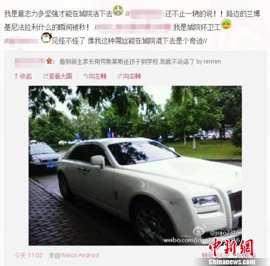 勞斯萊斯的現(xiàn)身,一位城院大三的學(xué)生拍下了這輛豪車(chē)并上傳至網(wǎng)絡(luò),學(xué)校的學(xué)生們看到了紛紛表示“我等屌絲怎么活!”
