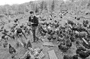 2012年4月份,夫妻倆又買了3000只“林地雞”放到山上散養(yǎng)。“這些雞都是我養(yǎng)大的,一點(diǎn)都不怕人,有時(shí)閑著的時(shí)候,我還和它們說(shuō)說(shuō)話,喜歡的時(shí)候還抱過(guò)來(lái)親親。”周銳說(shuō)。