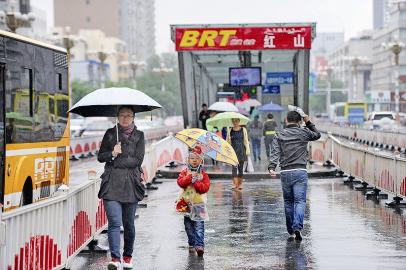 昨天16時(shí)40分,市民們平靜有序地走出BRT紅山車站,這里距公園北街約500米。 晨報(bào)記者 張萬德 攝