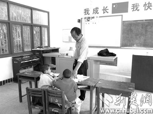 該校書記劉興祥介紹,目前學校有12名老師,其中4名年齡都在50歲以上,每名教師都要教授多個學科。53歲的趙繼平除了教五年級的數(shù)學,還要照看8名寄宿生的生活起居。從教35年,趙繼平原本有兩次調往城鎮(zhèn)學校的機會,但他放棄了,在山溝里一呆就是35年。“剛入校的伢每天晚上要叫兩次起夜,但有時伢還是會尿床,第二天又要洗又要曬。”又當老師又當媽的辛苦日子,卻被趙繼平以滿是疼愛的口吻說了出來。(通訊員陶火應攝)