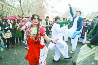 昨天,南京農(nóng)業(yè)大學舉辦第八屆國際文化節(jié)暨多國文化與風情展活動,來自德國、巴基斯坦、南非、巴西等40多個國家的外教、留學生與中國師生歡聚一堂,通過文化風情、異域美食品嘗、民族舞蹈等展示,加深相互了解和友誼。(徐琦)