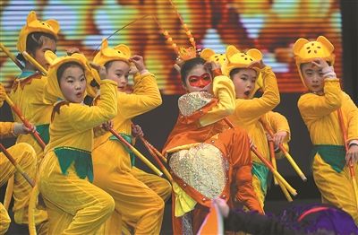 “快樂(lè)啟航·放飛夢(mèng)想”2016南京市少年兒童春節(jié)晚會(huì)日前在南京市青少年宮青春劇場(chǎng)舉行,來(lái)自南京市十幾所小學(xué)的500多名萌娃同臺(tái)演藝。(邵丹)