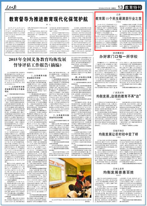 人民日報:教育居江蘇15個民生最滿意行業(yè)之首