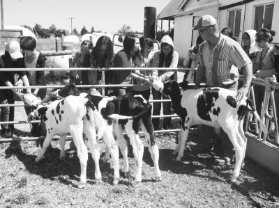 南農(nóng)學(xué)生在俄勒岡州立大學(xué)交流,圖為在農(nóng)場(chǎng)體驗(yàn)給小牛喂食。