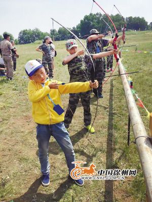 董鎬誠(chéng)在草原上體驗(yàn)射箭。家長(zhǎng)李女士提供