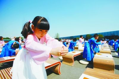 昨天,108名即將入讀小學(xué)一年級的兒童在南京大報(bào)恩寺遺址公園參加開筆禮。小朋友們身著明朝漢服,在導(dǎo)師帶領(lǐng)下,通過朱砂點(diǎn)智、抽取孔子志向簽、擊鼓明志等儀式環(huán)節(jié),寄托開啟智慧、明確志向、早日成才等美好愿望。(馮芃)