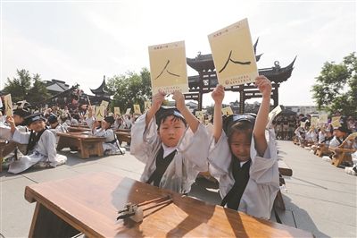 南京夫子廟小學(xué)新生昨天身穿漢服舉行“開筆禮”。 新華報(bào)業(yè)視覺中心記者 萬程鵬攝