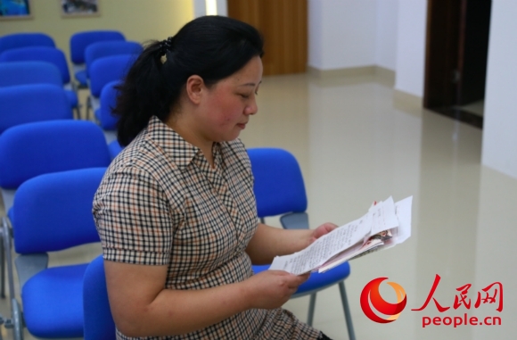 鄭巧玲正在閱讀受助學(xué)生的來信。 是鐘寅/攝