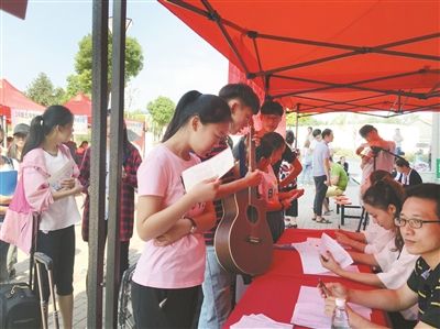 在徐州幼專報(bào)到處報(bào)名的新生。