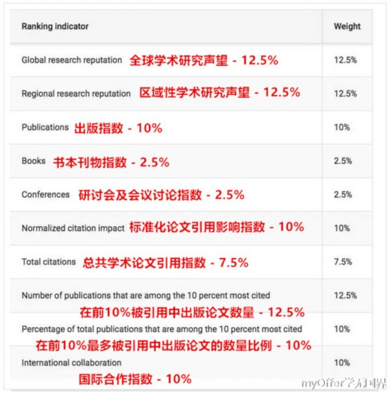 可以看出,學校對于全球研究的聲譽及影響、區(qū)域性的研究聲譽、出版物數(shù)量及被引用程度均會影響排名。