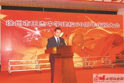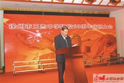 徐州市教育局局長張德超同志發(fā)表了熱情洋溢的講話。張局長首先向徐州市王杰中學建校六十周年表示熱烈的祝賀,向一直以來關(guān)心支持王杰中學,支持徐州市教育事業(yè)發(fā)展的社會各界人士表示感謝。他對學校60年來取得的成績給予了充分肯定,并對學校全體師生員工提出了殷切的期望。他指出,市教育局將重點支持王杰中學的建設(shè)發(fā)展,希望學校以60周年校慶為契機,緊抓徐州教育加快發(fā)展以及新一輪高中布局優(yōu)化的歷史機遇,秉承優(yōu)良的校風,弘揚改革創(chuàng)新精神,更新觀念,盡快實現(xiàn)學校改革發(fā)展的轉(zhuǎn)型升級。