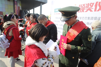活動當(dāng)天,小記者們對讀者節(jié)活動進(jìn)行了采訪。孩子們用自己的眼睛觀察和記錄著“彭城好人”的感人事跡。