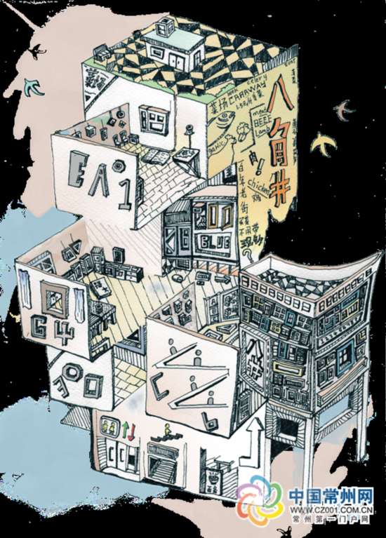“老建筑曾見證了一個城市的發(fā)展,我要讓更多的年輕人去了解、保護他們。而插畫就是我的工具,用來表達我對老建筑的情懷。”王澤文并不是常州人,對常州的老街也不是很熟悉,“如果老地方還在的話,我就實地創(chuàng)作,如果老地方已經(jīng)不存在了,我就查資料,看看當(dāng)?shù)赜惺裁刺禺a(chǎn),或有影響力的事物,和老建筑相結(jié)合來畫。”