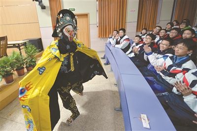 24日,南京金陵中學(xué)校園文化節(jié)系列活動(dòng)“走進(jìn)國(guó)粹”精彩啟動(dòng),京劇名家、非遺傳人、收藏專(zhuān)家等走進(jìn)校園,與高中學(xué)生交流互動(dòng),展現(xiàn)傳統(tǒng)文化的藝術(shù)魅力。(萬(wàn)程鵬)