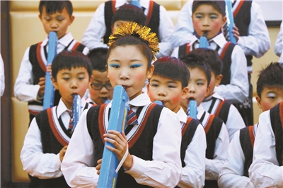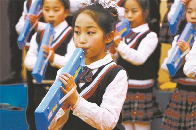 星光小學一直重視學生興趣潛能的引導與開發(fā),致力于讓每一個學生在藝術(shù)的熏陶下全面發(fā)展。為落實這一理念,更好地組織開展學校藝術(shù)教育工作,進三年來,學校將口風琴引進音樂課堂教學,來培養(yǎng)學生對器樂的興趣與愛好,豐富他們的課余生活。音樂課上教師對學生進行集體指導,班級集中練習各年級規(guī)定的曲目,低年級吹奏《劃船歌》、《小小鴨子》,中高年級吹奏《送別》、《哆來咪》、《四季歌》、《新年好》、《蘭亭序》……教學樓里口風琴聲悠揚而起。