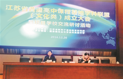 由江蘇省教科院基礎(chǔ)教育研究所主辦,南京市雨花臺中學(xué)、徐州高級中學(xué)聯(lián)合承辦的江蘇省普通高中課程基地學(xué)科聯(lián)盟(文化類)成立大會暨項目學(xué)校交流研討活動,于2016年12月26日在南京市雨花臺中學(xué)隆重舉行。江蘇省教育廳基教處處長馬斌,江蘇省教科院基礎(chǔ)教育研究所所長、研究員倪娟,江蘇省教科院基礎(chǔ)教育研究所徐兆蘭教授,省普通高中課程基地學(xué)科聯(lián)盟學(xué)校(文化類)校長、項目負責(zé)人以及相關(guān)專家出席研討會。