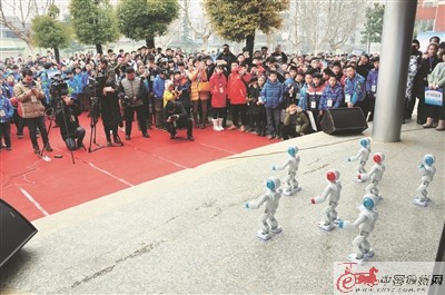 幾名機器人的舞蹈表演標志著徐州市首屆校園創(chuàng)客文化節(jié)活動的正式啟動,此次活動包括創(chuàng)客對抗賽、創(chuàng)客教育論壇、創(chuàng)客作品展、創(chuàng)客科技展四個項目。