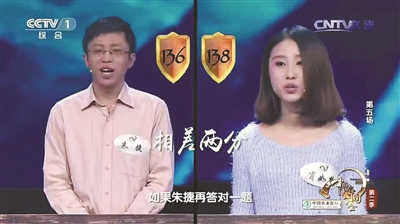 朱捷參加《中國(guó)詩(shī)詞大會(huì)》的視頻截圖。