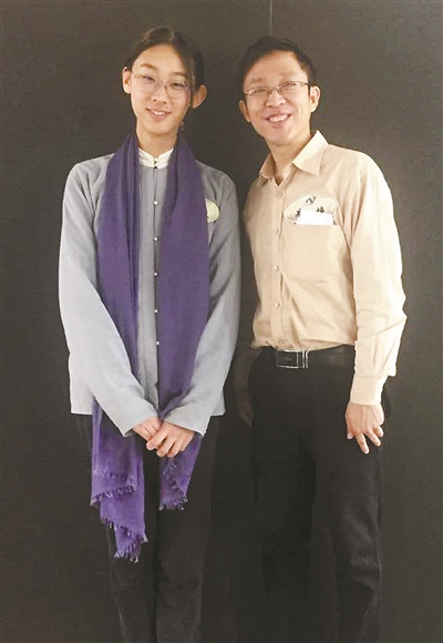 朱捷與復(fù)旦附中女孩武亦姝合影。