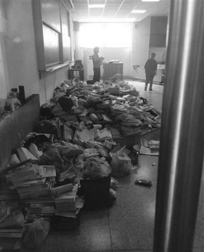 徐州醫(yī)科大教室內(nèi)考研資料被清 學(xué)生邊哭邊找書(shū)